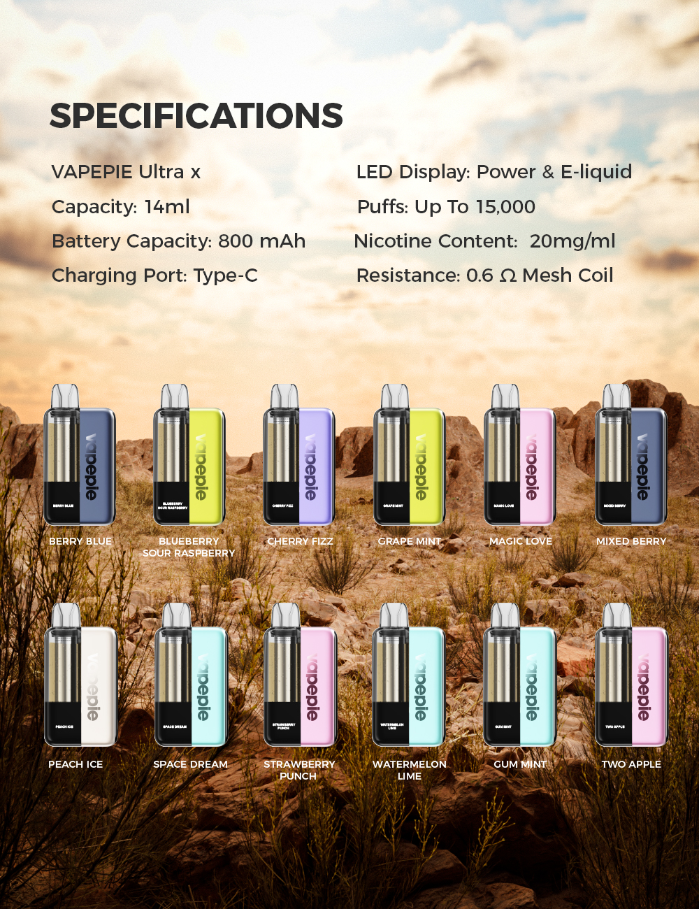 vapepie Ultra X 15000 Puffs - VÁLASZT MEG! VÉLETLEN ÍZ! OLCSÓBB!