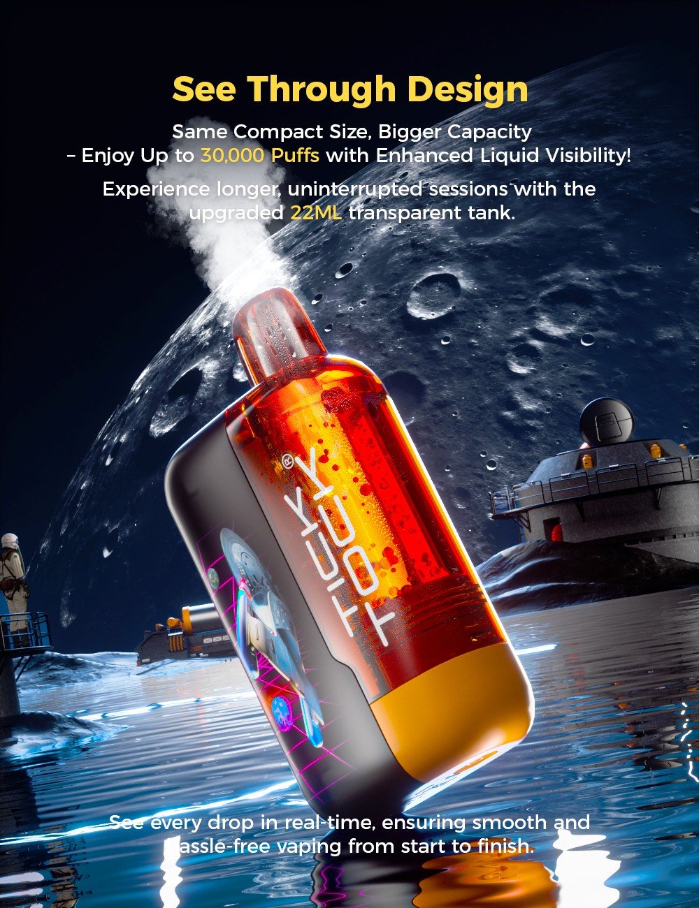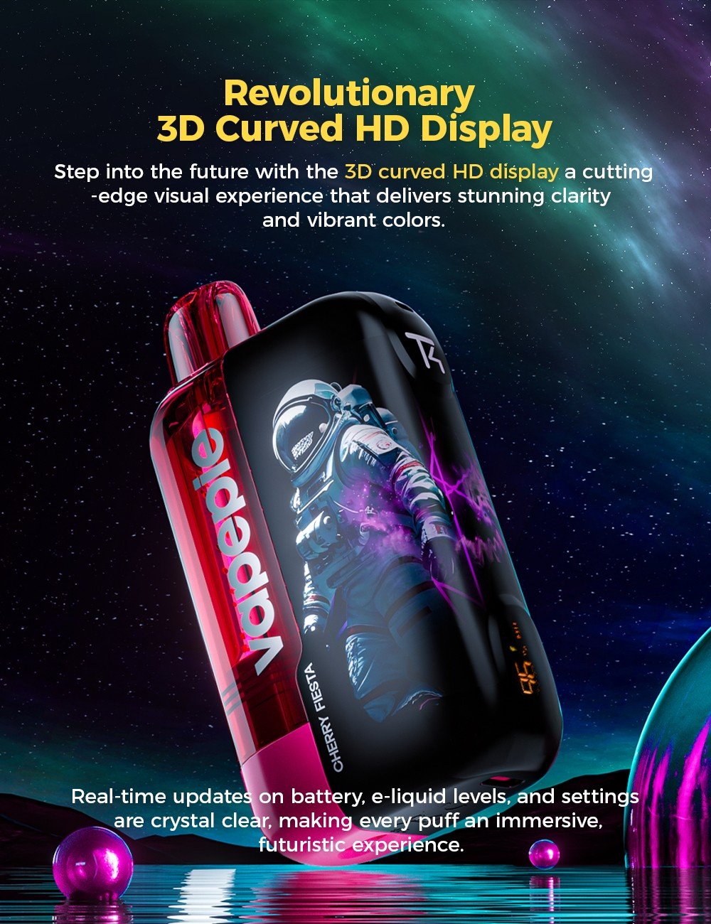 Lássa, ahogy minden slukk életre kel a világ első ívelt vaping kijelzőjén. Ragyogó, merész és hihetetlenül futurisztikus.